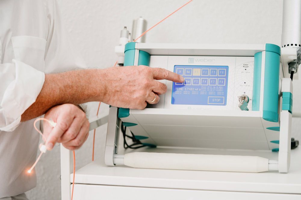 Bei der intravenösen Anwendung wird eine feine Lasersonde in die Vene eingeführt. Je nach therapeutischem Ziel kommen unterschiedliche Lichtfarben zum Einsatz: